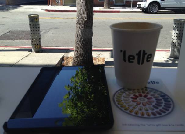 ‘Lette Macarons 是馬卡龍專門店,口味多樣,口感跟香氣不輸法國經典老店,價錢約莫只要2/3。據說發源地就是在名流聚集的比彿利山莊,目前美西有三家店,這次特別光臨第一家店,在Beverly Hill 的Charleville Blvd 靠近S. Beverly Dr.上,店面不是很起眼,可能一不小心就走過了。店內有賣咖啡(雀巢膠囊咖啡機),座位只有三,四個,通常大家都外帶,我們因為走累了需要休息,就現買現吃。