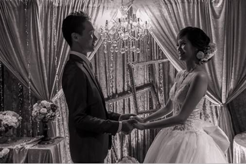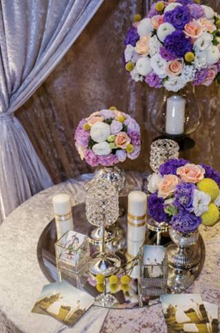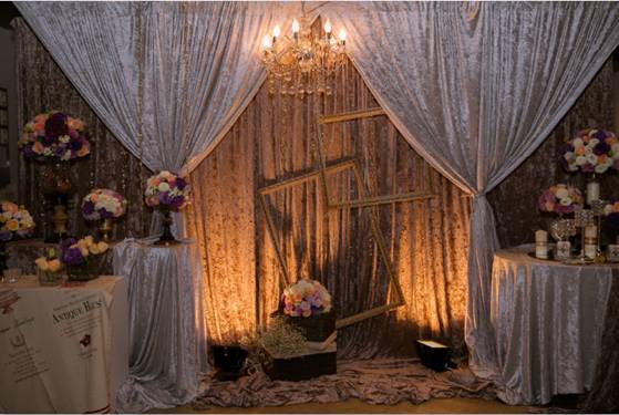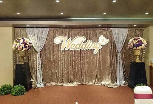 我希望場地佈置有復古華麗的風格,不過一開始老闆娘給我看了台式的低調奢華,後來我解釋是電影[大亨小傳]的那種,還立馬上網找了幾張照片,老闆娘說她剛好剪了可可色的絨布,搭上銀色絨布跟水晶燈……勾勒得很有畫面,我們也談得很愉快,最後才談到費用,頓時覺得那麼多張小朋友出走,感到有點傷心,不過因為也知道用掉那麼多花材也不是很便宜,還有人工佈置都很花時間跟體力,其實算算也是合理的收費。否則這效果短時間我也是無法DIY出來的。