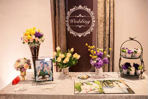 結婚的場地在宜蘭渡小月,飯店沒有提供簡易的婚禮佈置,我又不可能再次DIY,幸好陳先生人實在太好,總是盡量滿足我的願望。找到了宜蘭的綠海花藝館,跟老闆娘面談了一次,佈置的成果還挺滿意的。